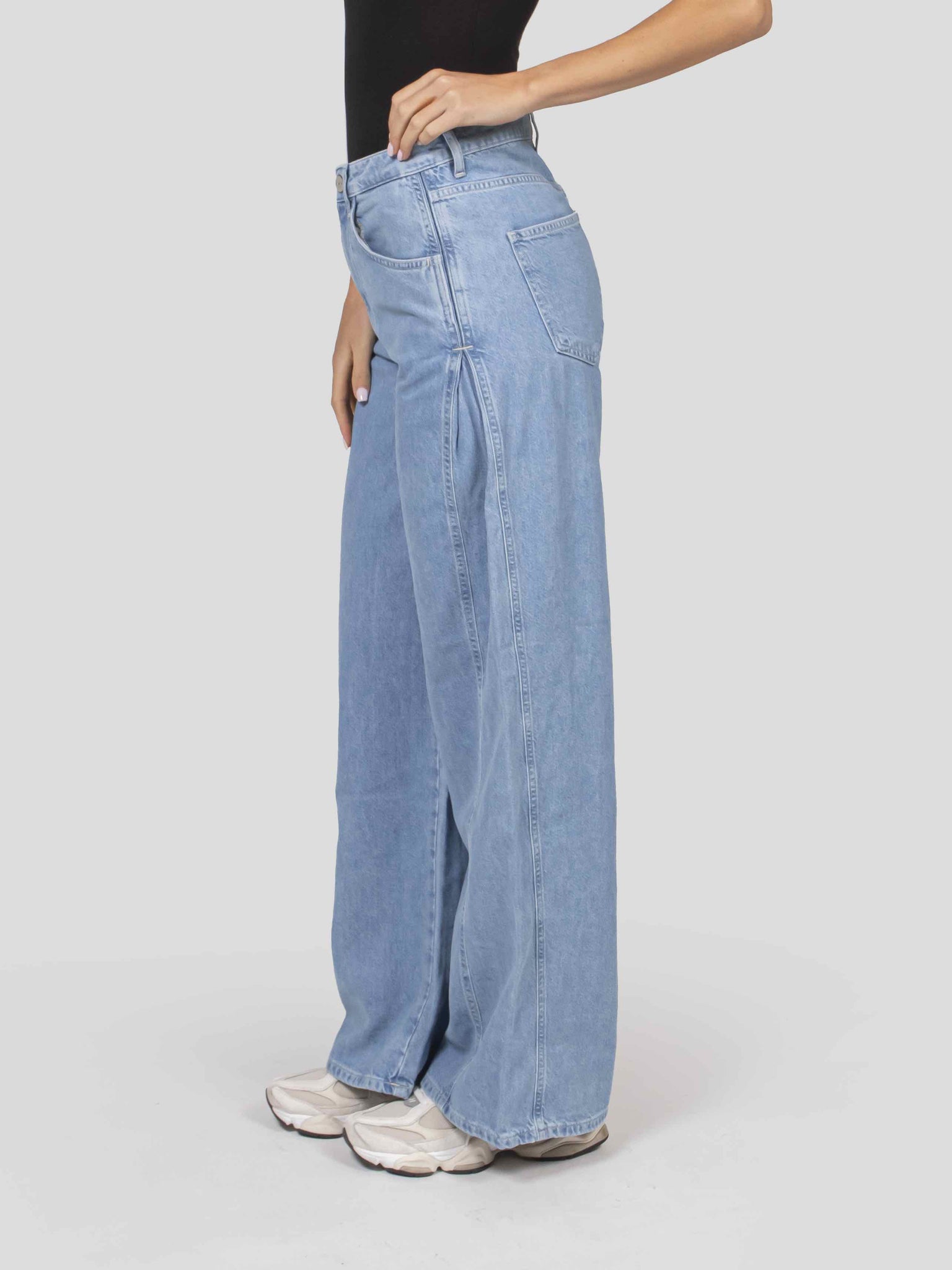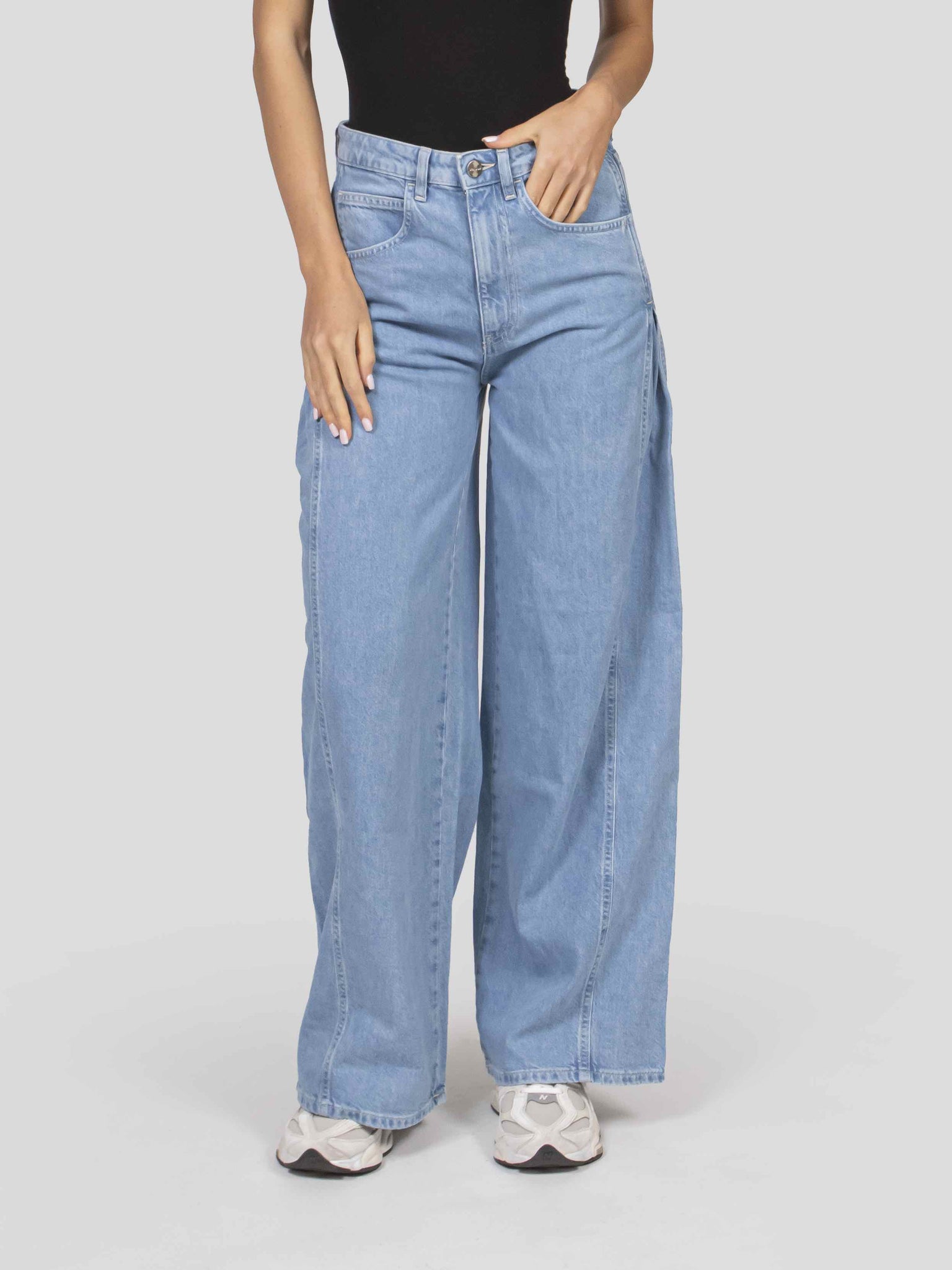 - Gamba ampia e piega sui fianchi